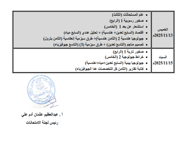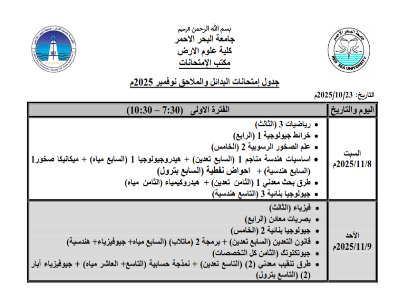 تهنئ أمانة الشؤون العلمية بجامعة البحر الأحمر الطلاب المرشحين للقبول بها دفعة 2023 المؤجلة وترحب بهم في رحابها وتتمنى لهم التوفيق والسداد في تحصيلهم الأكاديمي واسهامهم الفعال في مختلف الأنشطة الجامعية. وننبه بأنه لم يتم تحديد موعد بدء المعاينات والتسجيل لطلاب البكالوريوس والدبلوم التقني دفعة 2023 المؤجلة حتى الآن وسوف يتم الإعلان عبر الوسائل الرسمية في وقت لاحق باذن الله تعالى. نسأل الله التوفيق والسداد والاعانة أمانة الشؤون العلمية 28 سبتمبر 2025